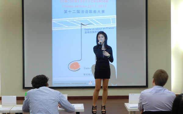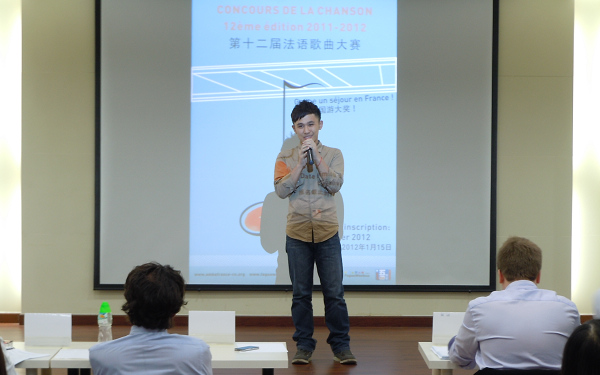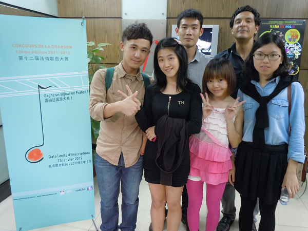 3月31日,西語系應(yīng)用法語教研室林師茂老師和外教Nordine帶領(lǐng)10級和11級應(yīng)用法語專業(yè)馮詩、李玲玲、郁亞一、謝春紅4位同學(xué)參加了由法國領(lǐng)事館舉辦的第十二屆法語歌曲比賽南方地區(qū)半決賽。比賽地點(diǎn)位于廣州法盟所在地。來自廣西、廣東、福建和海南十多所高校共60余名選手參加了此次比賽。選手們準(zhǔn)備充分,表演充滿想象力和表現(xiàn)力,他們用最優(yōu)美的法語語言精彩演繹了60年代法語老歌。