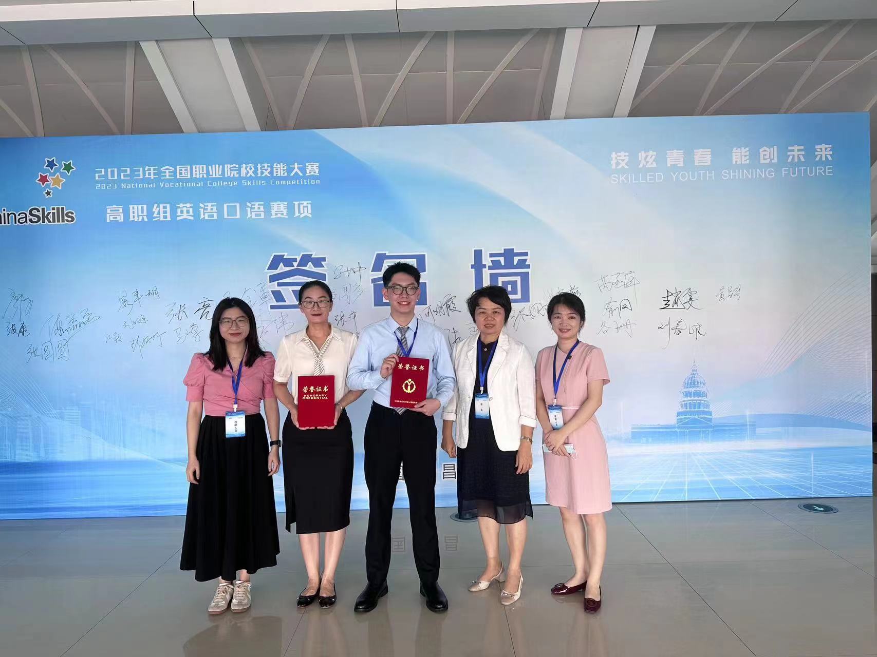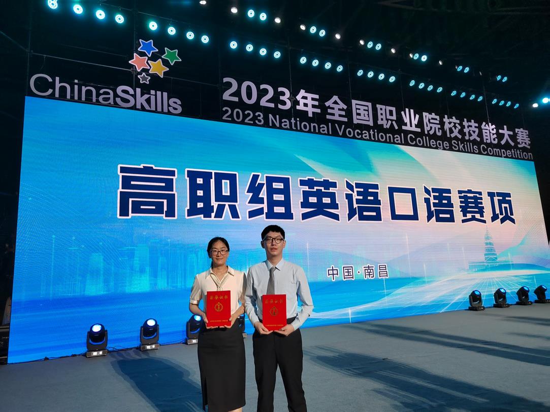 2023年全國(guó)職業(yè)院校技能大賽高職組英語口語賽項(xiàng)于7月13-15日在江西省南昌市舉行,我校張銀杰老師和周詩杰同學(xué)獲得專業(yè)組三等獎(jiǎng)。本次大賽共有來自全國(guó)31個(gè)省、自治區(qū)、直轄市的60支參賽隊(duì)伍參加。英語口語賽項(xiàng)由往年的學(xué)生參賽改為師生同賽,各院校師生同臺(tái)競(jìng)技,通過“師生同賽”的創(chuàng)新競(jìng)賽方式,師生結(jié)為競(jìng)賽共同體,一同備賽,同臺(tái)參賽。