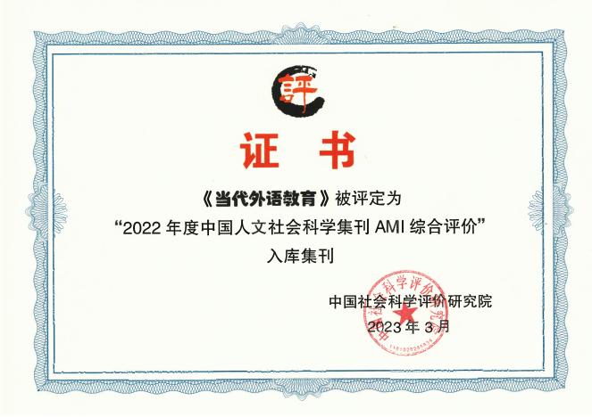 《當代外語教育》創(chuàng)刊于2016年,現(xiàn)由我校特聘教授、四川外國語大學博士生導師熊沐清教授擔任編委會主任。2023年1月,《當代外語教育》被中國社會科學評價研究院評定為“2022年度中國人文社會科學集刊AMI綜合評價”入庫集刊,是403種入庫集刊中唯一一所由職業(yè)學院主辦的集刊,充分體現(xiàn)了學校領導對辦刊工作的高瞻遠矚和對學校內(nèi)涵建設的高度重視,進一步提升了我校辦學的知名度與影響力,為“雙高?!苯ㄔO發(fā)展搭建更高更廣的科研學術交流合作平臺。《當代外語教育》編輯部將在新一屆領導班子的帶領下,凝心聚力,開拓創(chuàng)新,努力實現(xiàn)辦刊成效的新突破。