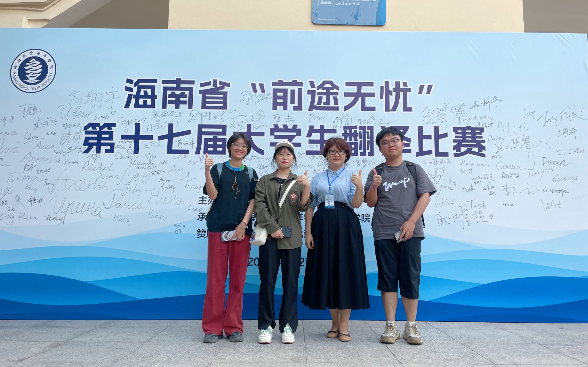 4月27日,由海南翻譯協(xié)會主辦的第17屆海南省大學(xué)生翻譯大賽圓滿落幕。我校英語學(xué)院、國際商務(wù)學(xué)院、西方語言學(xué)院、東方語言學(xué)院的同學(xué)們在翻譯大賽中脫穎而出,憑借扎實(shí)的語言功底和精準(zhǔn)的翻譯技巧,為學(xué)校贏得了榮譽(yù)。其中,英語專業(yè)何佳明同學(xué)榮獲英語??平M二等獎,康振友和歐陽昊天同學(xué)分別獲得三等獎;國際商務(wù)學(xué)院黃東平同學(xué)榮獲英語??平M三等獎,王茂楠、吳文獲、王婷婷同學(xué)獲得優(yōu)勝獎;俄語專業(yè)江蘭同學(xué)榮獲俄語??平M一等獎、徐玲君同學(xué)榮獲二等獎、李冰冰同學(xué)榮獲優(yōu)勝獎;日語專業(yè)扶耀陽同學(xué)獲得日語??平M一等獎、劉子涵和劉平平同學(xué)分別獲得三等獎;泰語專業(yè)高婷同學(xué)榮獲泰語組一等獎、藍(lán)珍紅同學(xué)獲得二等獎、黃金昌同學(xué)獲得三等獎。