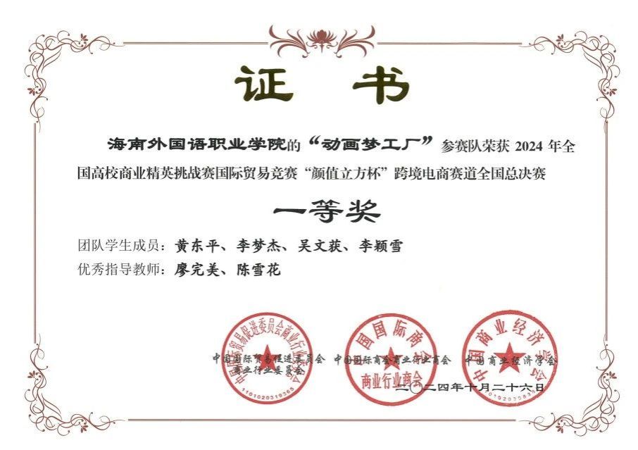日前,2024年全國(guó)高校商業(yè)精英挑戰(zhàn)賽國(guó)際貿(mào)易競(jìng)賽“顏值立方杯”跨境電商賽道全國(guó)總決賽落下帷幕。我校國(guó)際商務(wù)學(xué)院四名選手黃東平、李夢(mèng)杰、吳文獲及李穎雪參加競(jìng)賽,并在競(jìng)賽中表現(xiàn)出色,再次斬獲一等獎(jiǎng)的優(yōu)異成績(jī)。我校蟬聯(lián)該競(jìng)賽一等獎(jiǎng),不僅是對(duì)我校學(xué)生個(gè)人專(zhuān)業(yè)能力的肯定,更是對(duì)學(xué)校人才培養(yǎng)質(zhì)量的高度認(rèn)可。