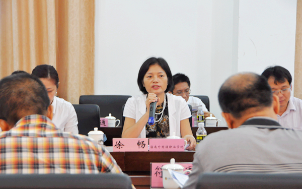 會(huì)上,徐暢副書記首先代表學(xué)院歡迎了各位來賓的到來。在簡(jiǎn)要介紹學(xué)院近幾年發(fā)展成績(jī)后,她指出,海南建設(shè)自由貿(mào)易試驗(yàn)區(qū)和中國(guó)特色自由貿(mào)易港給我院發(fā)展帶來新的機(jī)遇,我院目前“職業(yè)+外語”復(fù)合型人才培養(yǎng)模式將為海南新一輪發(fā)展培養(yǎng)更多優(yōu)秀人才。希望通過此次研討會(huì),進(jìn)一步深化我院與各中職學(xué)校的交流與合作,建立更加順暢互通的人才培養(yǎng)模式、專業(yè)對(duì)接和資源共享模式,實(shí)現(xiàn)雙方合作共贏。徐暢副書記對(duì)與會(huì)的中職學(xué)校在學(xué)生職業(yè)培訓(xùn)教育、職業(yè)人才培養(yǎng)等工作的成效給予了肯定與表揚(yáng),希望在座的校領(lǐng)導(dǎo)對(duì)中高職一體化試點(diǎn)項(xiàng)目多多獻(xiàn)計(jì)獻(xiàn)策,為雙方更廣更深的合作奠定基礎(chǔ)。