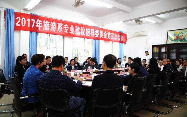 11月24日,我院旅游系結(jié)合2018屆畢業(yè)生供需見面會暨企業(yè)文化進校園活動,召開了專業(yè)建設(shè)指導(dǎo)委員會第三次會議。來自全球頂級品牌酒店、5A級景區(qū)、全國百強旅行社、海南優(yōu)秀的旅游文創(chuàng)企業(yè)等行企業(yè)專家受邀參加會議。我院教務(wù)處主要負(fù)責(zé)人賴東明、學(xué)院教學(xué)督導(dǎo)委員會耿鐵珍教授、旅游系黨總支主要負(fù)責(zé)人林明霞及該系全體教師參加會議。會議由旅游系李旭芳主任主持。