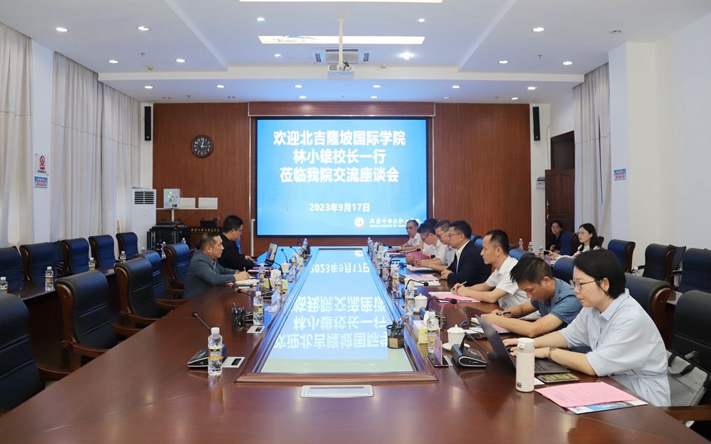 黃學(xué)彬?qū)α中⌒坌iL一行的到來表示熱烈歡迎。座談會(huì)上,他詳細(xì)介紹了我校的基本情況、發(fā)展歷史,以及主動(dòng)服務(wù)國家戰(zhàn)略,開展“外語+”應(yīng)用型人才培養(yǎng)所取得的成績。他表示,此次交流活動(dòng)是為了增進(jìn)我校與馬來西亞北吉隆坡國際學(xué)院之間的了解,為進(jìn)一步強(qiáng)化國際聯(lián)合辦學(xué)奠定基礎(chǔ),希望雙方攜手打造多維度國際人才培養(yǎng)平臺(tái),共同為中國和馬來西亞兩國人才培養(yǎng)和文化交流作出貢獻(xiàn)。