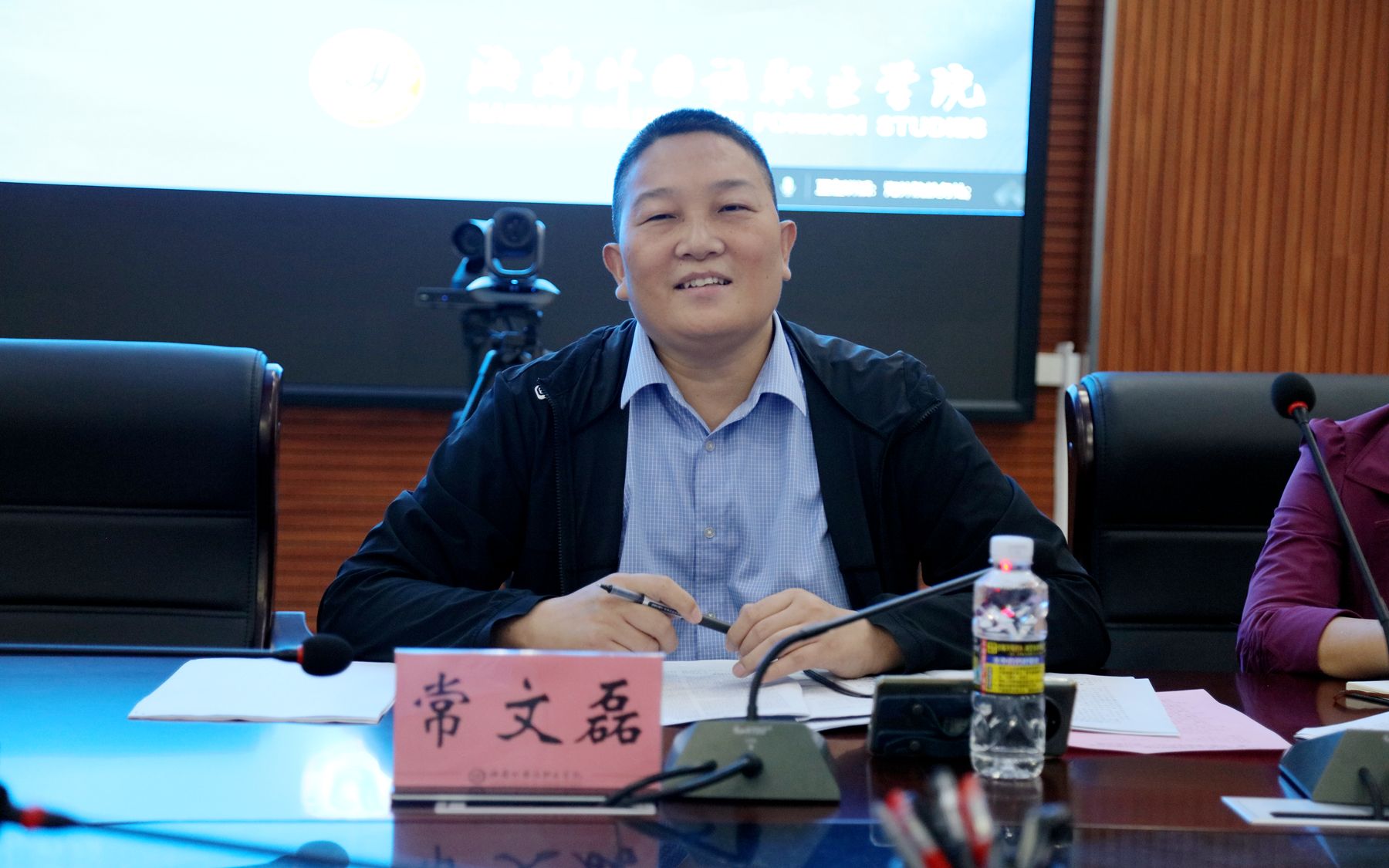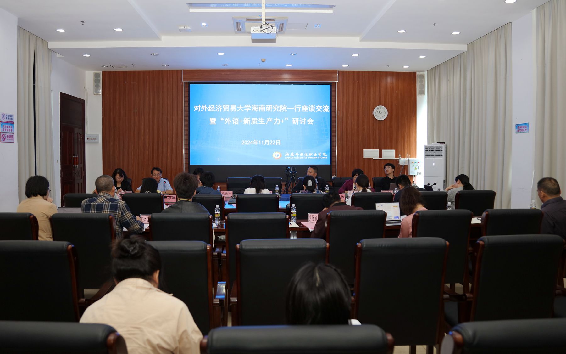 為進(jìn)一步做好專業(yè)規(guī)劃,探討外語(yǔ)專業(yè)如何在新質(zhì)生產(chǎn)力蓬勃發(fā)展的浪潮中實(shí)現(xiàn)突破與轉(zhuǎn)型,11月22日上午,我校召開(kāi)對(duì)外經(jīng)濟(jì)貿(mào)易大學(xué)海南研究院一行座談會(huì)暨“外語(yǔ)+新質(zhì)生產(chǎn)力+”研討會(huì)。校黨委委員、副校長(zhǎng)苑德宇出席會(huì)議。