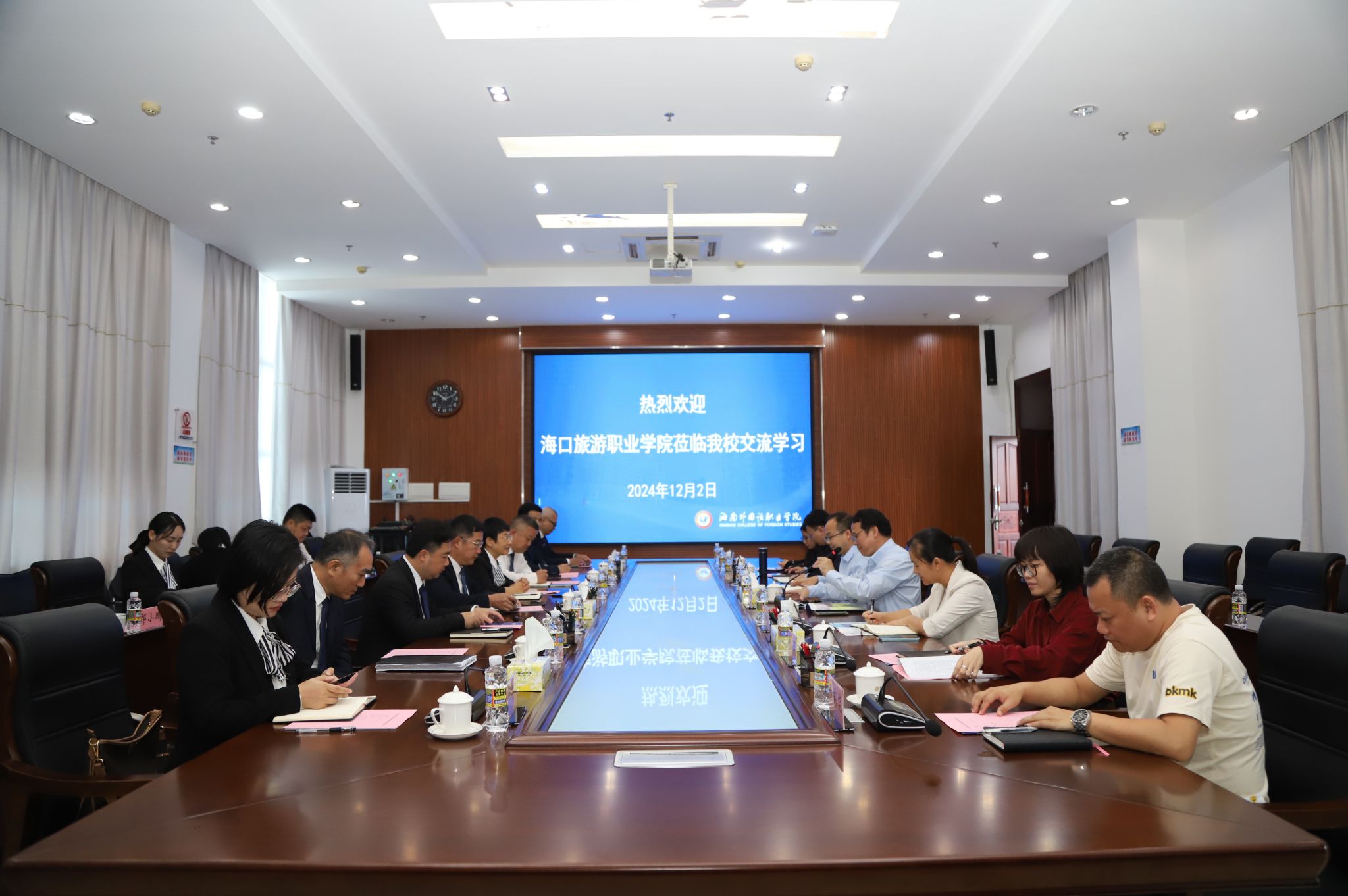 楊英在講話中感謝我校的熱情接待,隨后介紹了??诼糜温殬I(yè)學(xué)院的基礎(chǔ)設(shè)施建設(shè)、師資隊(duì)伍建設(shè)、課程體系構(gòu)建以及學(xué)生綜合素質(zhì)培養(yǎng)等方面情況,希望通過(guò)此次訪問(wèn),加強(qiáng)兩校交流和合作,學(xué)習(xí)海南外國(guó)語(yǔ)職業(yè)學(xué)院的辦學(xué)經(jīng)驗(yàn),提升??诼糜温殬I(yè)學(xué)院的教學(xué)質(zhì)量。