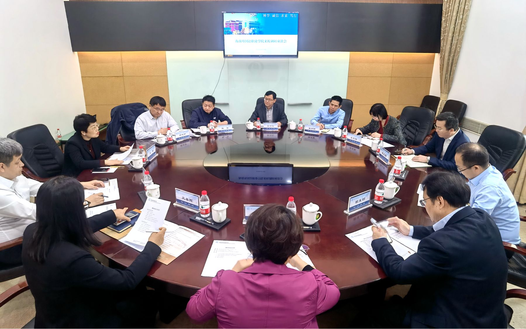 18日上午,陳正強率隊訪問對外經(jīng)濟貿(mào)易大學(xué),受到該校校長、黨委副書記趙忠秀,副校長兼黨委副書記文君等領(lǐng)導(dǎo)的熱情接待。陳正強對該校選派優(yōu)秀干部到我校掛職表示感謝,并強調(diào)此舉為兩校搭建人才交流與經(jīng)驗共享的橋梁。他指出,學(xué)校將學(xué)習(xí)該校成熟管理經(jīng)驗,推動職業(yè)本科院校數(shù)字化及專業(yè)轉(zhuǎn)型,并依托海南自貿(mào)港政策優(yōu)勢,搭建合作橋梁,助力海南經(jīng)濟社會發(fā)展。期間,陳正強一行還分別走訪了對外經(jīng)濟貿(mào)易大學(xué)教務(wù)處、國際教育學(xué)院、網(wǎng)絡(luò)安全和信息化處、國際經(jīng)濟貿(mào)易學(xué)院,就數(shù)字化管理、專業(yè)規(guī)劃與國際化資源利用等內(nèi)容進行深度研討交流。