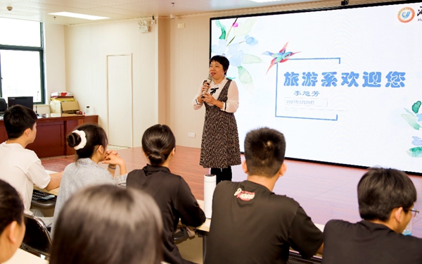 李旭芳老師向同學們介紹旅游業(yè)的發(fā)展趨勢分析,旅游專業(yè)廣闊而明朗的前景分析以及我院旅游系的愿景、使命和核心價值觀,我系人才培養(yǎng)方案、師資隊伍、校企合作、往屆優(yōu)秀畢業(yè)生代表等內(nèi)容分享,并為同學們解答存在的疑問,期待同學們的到來。