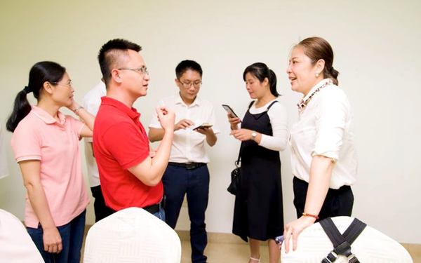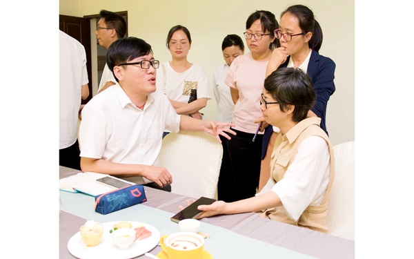 酒店管理專業(yè)老師在共同探討技能大賽的規(guī)則和發(fā)展趨勢