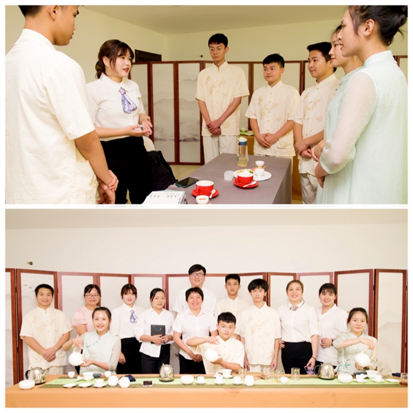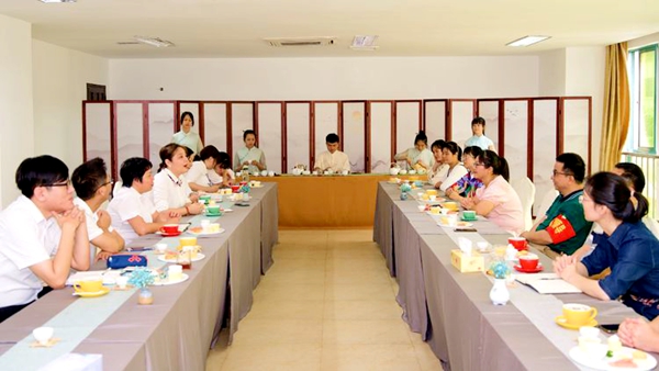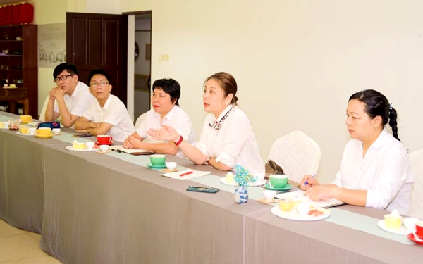 兩校領導及教師在茶藝實訓室舉行調研交流會,文昌市中等職業(yè)技術學校校長林勇、副校長林方立、酒店管理和餐飲管理負責人劉慶媚老師以及導游服務、酒店管理、餐飲管理等相關專任教師們參加此次交流會。