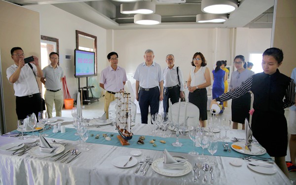 交流期間,來訪客人還在學(xué)院領(lǐng)導(dǎo)的帶領(lǐng)下,對(duì)學(xué)院酒店餐飲實(shí)訓(xùn)室、日韓風(fēng)情文化實(shí)訓(xùn)室、體藝館等教學(xué)場所進(jìn)行了實(shí)地參觀。