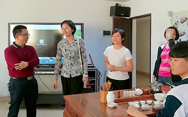 交流期間,我院一行在文昌市中等職業(yè)技術(shù)學(xué)校領(lǐng)導(dǎo)的帶領(lǐng)下,對(duì)學(xué)校的前廳、客房、餐飲、烹飪等實(shí)訓(xùn)室進(jìn)行參觀(guān)。