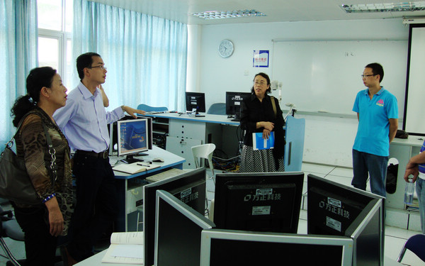 在深圳信息職業(yè)學(xué)院應(yīng)用英語系主任劉穎的熱情陪同下參觀了學(xué)院信息中心,安曉燦教授等隨行4人仔細(xì)聽取并了解網(wǎng)絡(luò)學(xué)習(xí)平臺(tái)的使用與管理