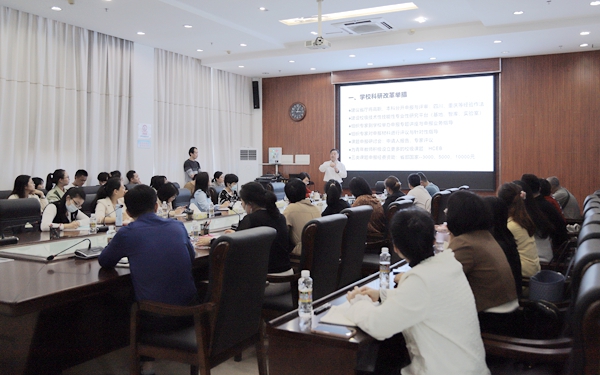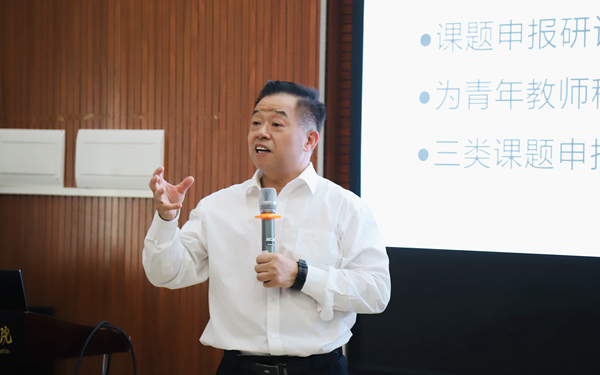 為進一步提升“雙高計劃”建設背景下高職院校教師的科研水平和能力,促進教師隊伍建設,強化職業(yè)教育內(nèi)涵建設,推動學校高質(zhì)量發(fā)展。3月10日下午,學??蒲蟹罩行奶匮D洗髮W二級教授、博士生導師、原海南經(jīng)貿(mào)職業(yè)技術學院院長黃景貴為教師們做專題講座。講座由學校黨委委員、副校長鄧穎穎研究員主持。