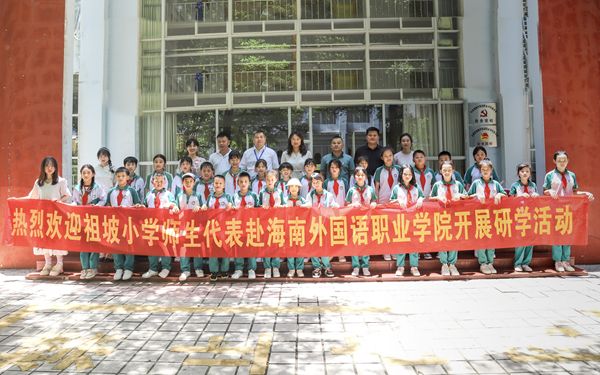 為認(rèn)真做好我校鄉(xiāng)村振興工作,充分利用學(xué)校教育教學(xué)資源,發(fā)揮“外語”教學(xué)優(yōu)勢,為我校定點(diǎn)幫扶學(xué)校提供外語體驗(yàn)式研學(xué)服務(wù),5月30日上午,我校特邀請定安縣新竹鎮(zhèn)祖坡小學(xué)校長王飛等30余名師生代表來我校開展研學(xué)活動(dòng)。學(xué)校黨委委員、副校長時(shí)秀梅出席活動(dòng)。